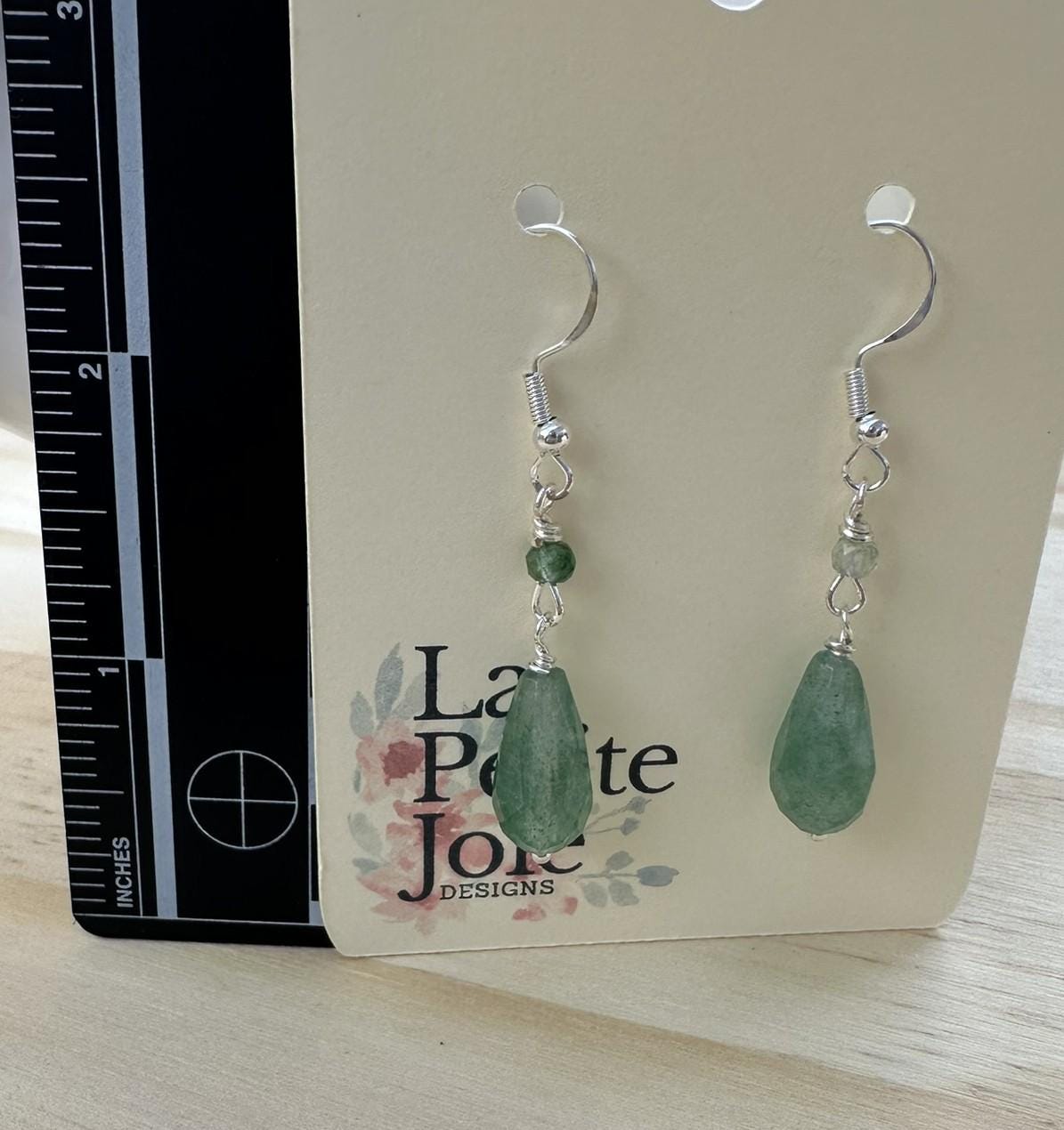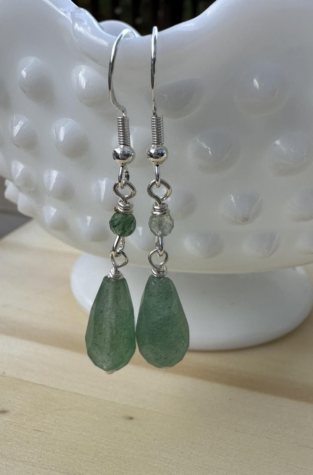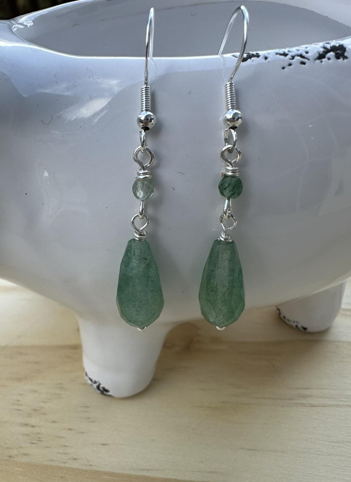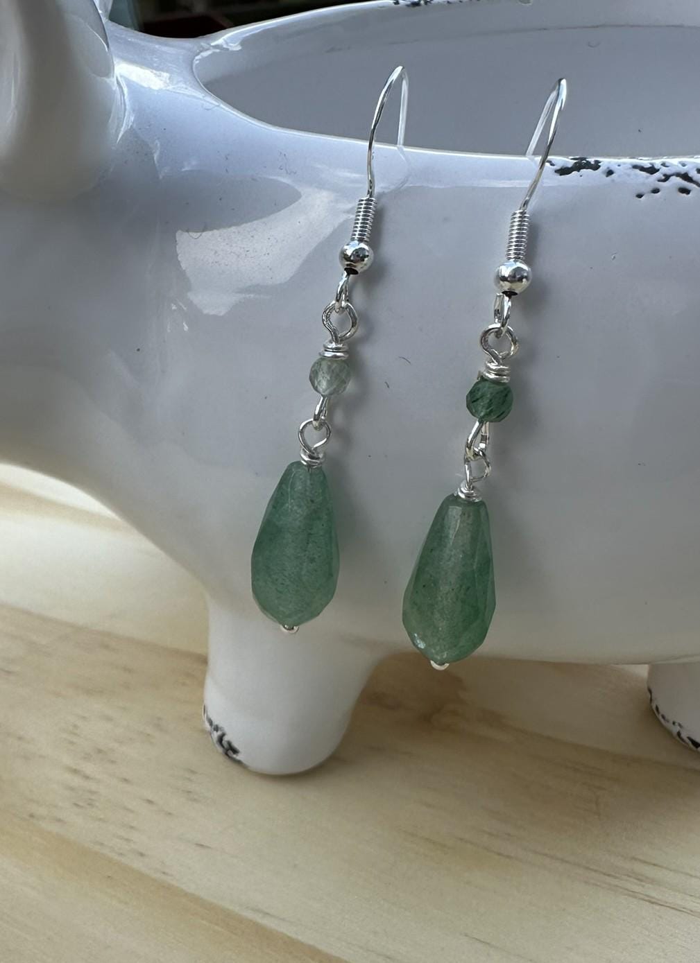 Handcrafted with faceted green strawberry quartz teardrops, these earrings shimmer with a soft, natural glow with hues of mossy green that feel both earthy and romantic. Finished on French hooks for graceful movement and a touch of bohemian charm.